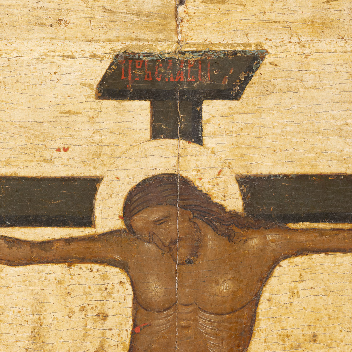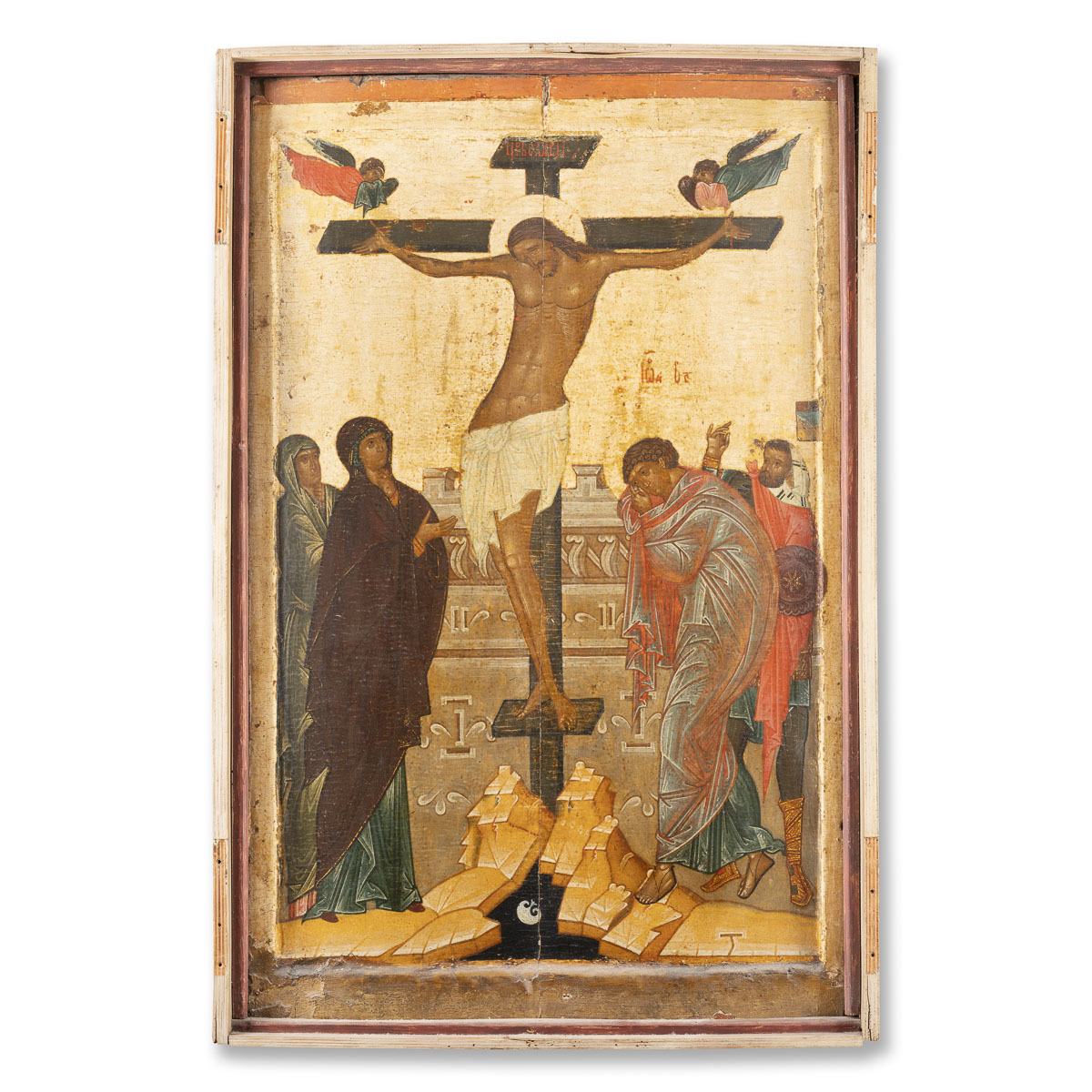MUSEALE IKONE MIT DER KREUZIGUNG CHRISTI AUS DER KIRCHEN-IKONOSTASE VON WOLOTOWO