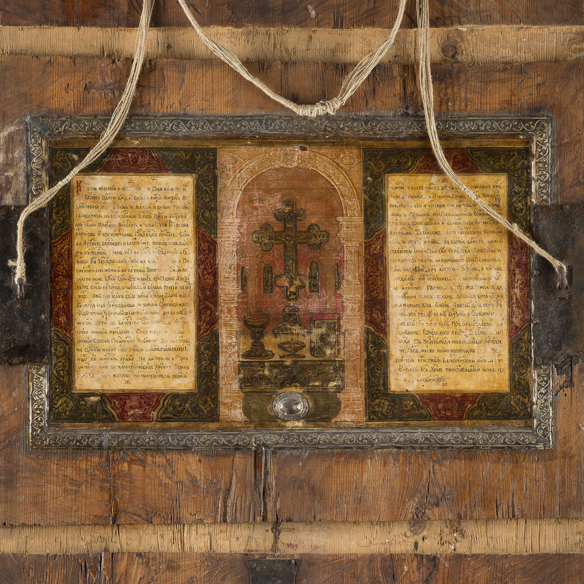Verbund zweier Bretter mit zwei Rückseiten-Sponki | Kowtscheg, Leinwand, Eitempera auf Kreidegrund | Vergoldung | 89,3 x 57,9 cm