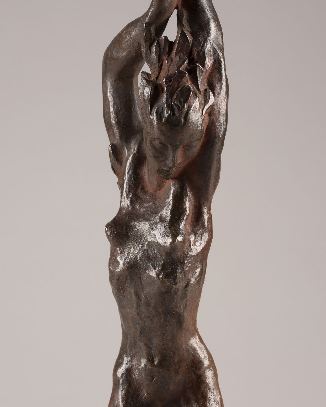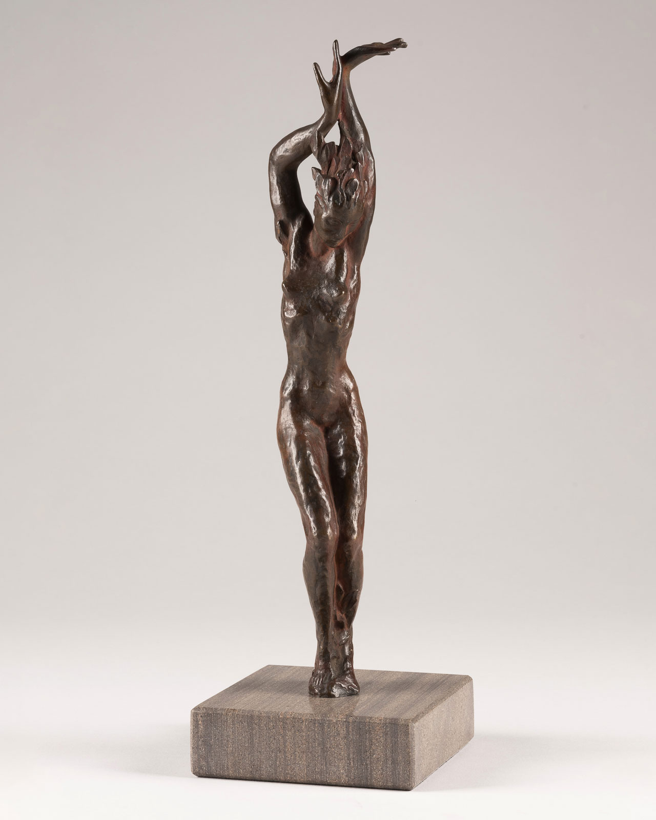 Bronze, rotbraun patiniert | H. 28,2 cm, Ges.-H. 31,5 cm | Ges.-Gew. 1,8 kg. | monogrammiert ‚RS‘ | Gießereistempel ‚H NOACK BERLIN‘ | Sockel erneuert | Minimalste Oxidationsspuren.