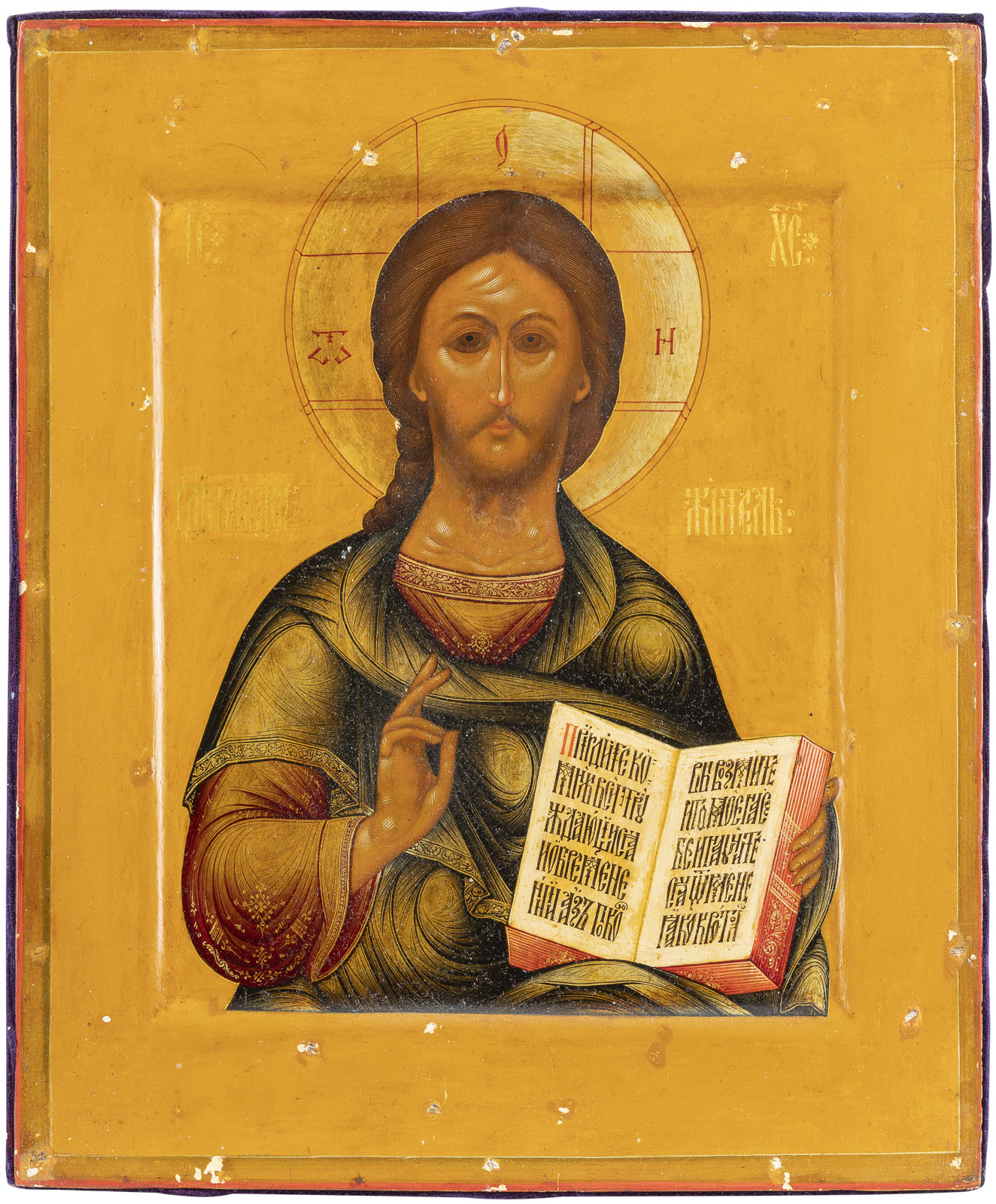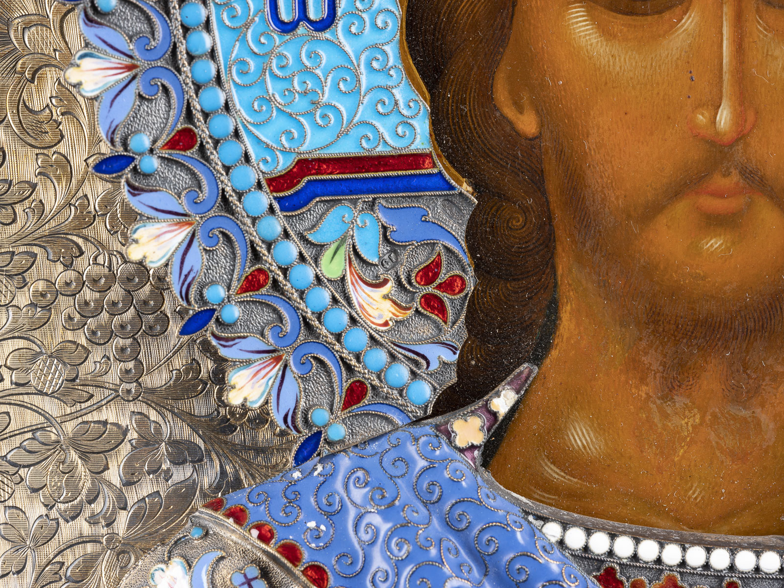 IKONE MIT CHRISTUS PANTOKRATOR MIT CLOISONNÉ-EMAIL-OKLAD