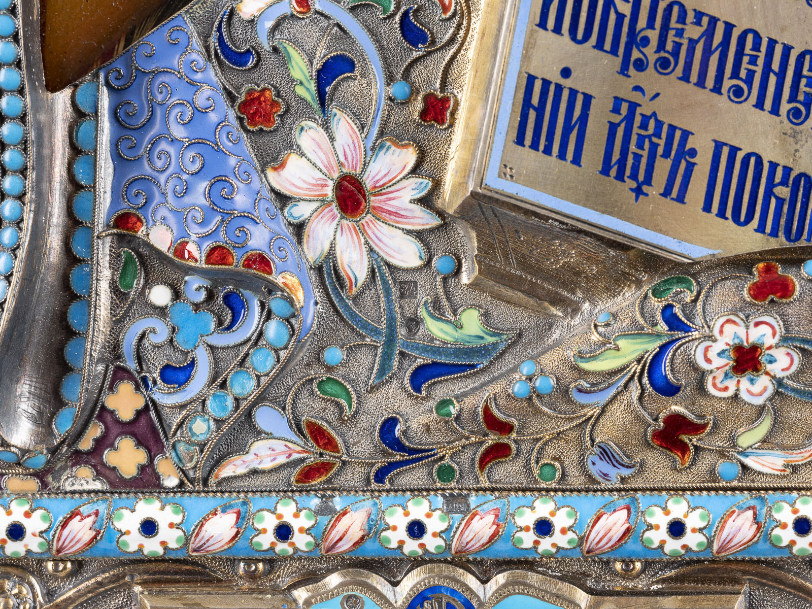 Eitempera auf Kreidegrund auf Holz, Kowtscheg, partielle Vergoldung. Oklad aus vergoldetem Silber mit getriebenem und graviertem Dekor, Emailapplikationen