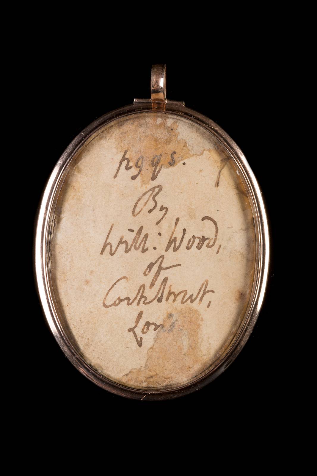 Verso: Rückseitig auf der Papierabdeckung signiert 'By Will: Wood, of Corkstreet, Lond.'. Hochovale Form. Brustbildnis einer jungen Dame in braunem Kleid nach rechts. Das Band des gelben Huten zieren blütenartig gestaltete Bäusche. Hinter Glas in 14 kt. Goldmontierung gerahmt. Literatur: Daphne Foskett: Miniatures. Dictionary and Guide, Suffolk 1990, 387. Ausstellungskatalog: Daphne Foskett: British Portrait Miniatures, Edinburgh 1965; Kunsthandel Wachholz, München.