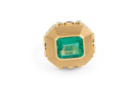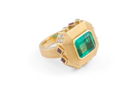 Smaragd ca. 4,77 ct. Rubine und Brillanten