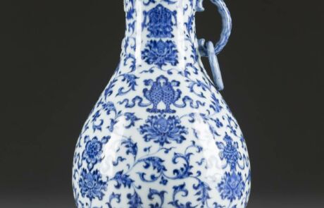 BLAU-WEISSE VASE MIT ACHT BUDDHISTISCHEN GLÜCKSSYMBOLEN